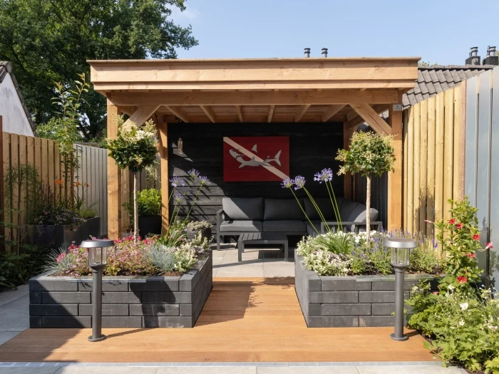 Dit prachtige buitenverblijf is naar eigen wens uit te breiden met zijwanden. Zo creëer je extra privacy en kan je optimaal genieten! De wanden zijn verkrijgbaar in Zweeds rabat (enkelzijdig), blokhutprofielplank (enkelzijdig) of sponningplank (enkelzijdig).