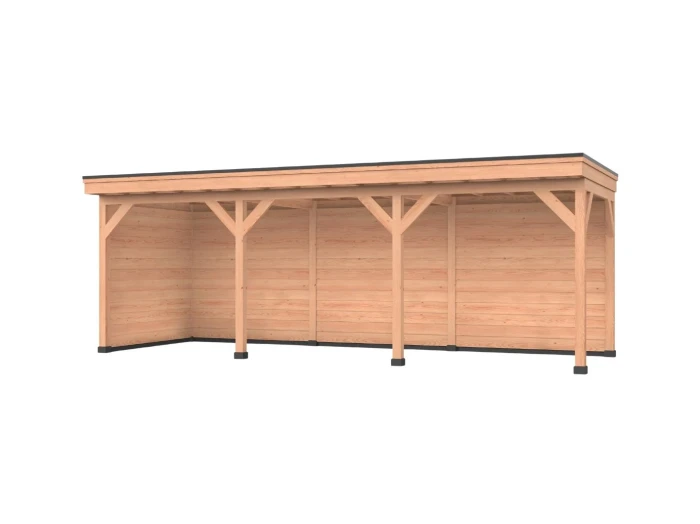 Dit prachtige buitenverblijf is naar eigen wens uit te breiden met zijwanden. Zo creëer je extra privacy en kan je optimaal genieten! De wanden zijn verkrijgbaar in Zweeds rabat (enkelzijdig), blokhutprofielplank (enkelzijdig) of sponningplank (enkelzijdig).